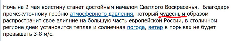 Чудо, братие, чудо, радуется Николай! В честь Светлого Воскресенья гребень атмосферного давления чудесным образом распространит свое влияние на большую часть европейской России!