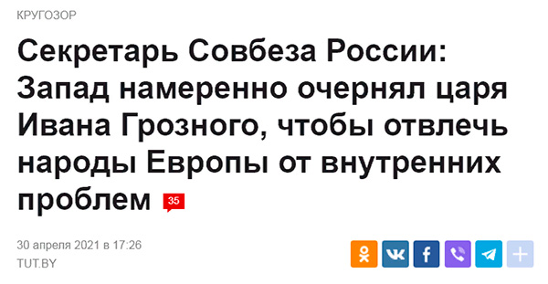 Запад намеренно очернял Ивана Грозного, отвлекал, сука, народы Европы. Ведь народы Европы каждое утро только откроют глаза, как сразу - шасть к компьютеру: почитать в Интернете, что там такого опять отчебучил Иван Грозный и отвлечься от внутренних проблем.