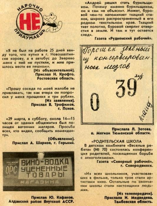 Крокодиловская рубрика баннизмов называлась "Нарочно не придумаешь", под руководством Н.Монахова. Образец: