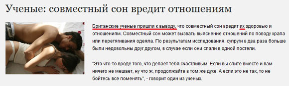 Британские ученые решили, рассказал Владимир, что никогда больше не будут спать вместе. Им это мешает.