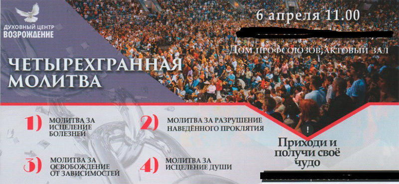 Жулики какие-то демпингуют, грустит Мария. Ни один поп в здравом уме даже двухгранную молитву не заведет, потому что за все надо получать по отдельности. За исцеление - заплати. За разрушение - заплати. За освобождение - заплати. За новый "Мерседес" - заплати втройне. Впрочем, тут еще и актовый зал Дома профсоюзов - благостное место, намоленное.