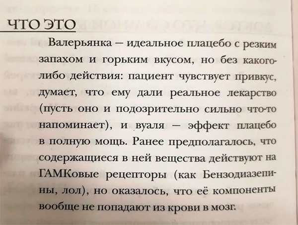 Так вот чего Бублика так колбасит от валерьянки-то! Это у него просто плацебо начинает чесаться вместе Бензодиазепиной, лол!