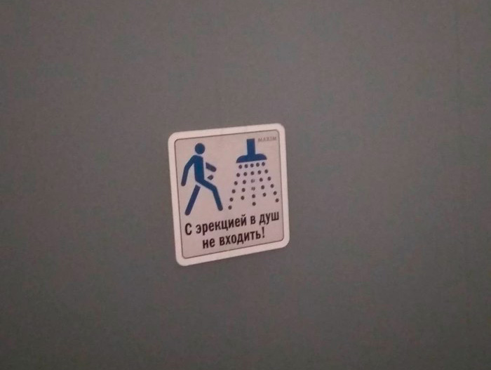 Вообще, картинки с запретом эрекции в душе и сушилкой надо размещать рядом - тогда все логично получается: после душа стоячий .... трудно засунуть в сушилку, и предупреждающие знаки как раз к месту получаются.