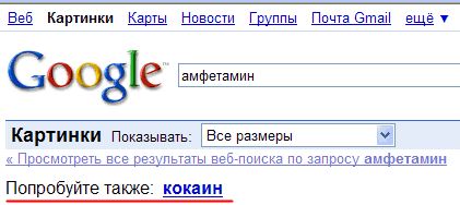 "Гугль", замечает Ша Лун, весьма любезен. При поиске легкого наркотика амфетамина он любезно предлагает сразу нюхнуть кокаинчику: