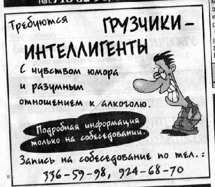Объясняем. К работе грузчика нужно подходить разумно. Поэтому перед поднятием рояли обязательно нужно остаканиться: сначала у подъезда, потом у квартиры, а потом непосредственно перед подъемом этого мерзского существа. А зачем, спрашиваете, при этом еще и чувство юмора? Чтобы разразиться задорным смехом, когда рояля покатится колобком по лестнице, выскочив из рук расслабившихся грузчиков. Что еще спрашиваете? Зачем интеллигентность? Ну, чтобы грузчик вообще знал такое слово - РОЯЛЯ.