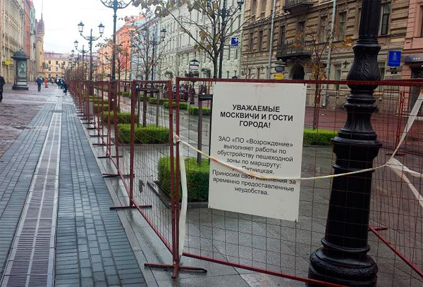 Не уверена, что верно поняла, какая связь "питерского вечера" с "уважемыме москвичами" (не бывала ни в том, ни в другом городе, так что не могу оценить, который из них на фото). НО "временно предоставленные неудобства" это нечто.
