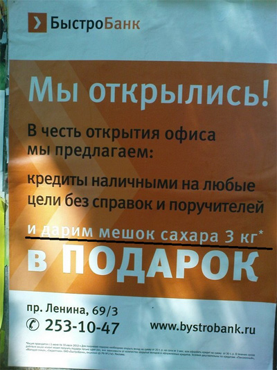 Правильно, подтверждает Snake, кредиты надо брать вот в этом банке. На прошлой неделе, говорят, сгущенку раздавали.