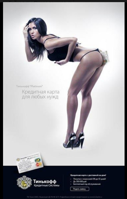На счет тинькоффского креатиффа, вторая картинка с теткой - имхо это намек на один анекдот, где таким способом расплатились с проституткой.