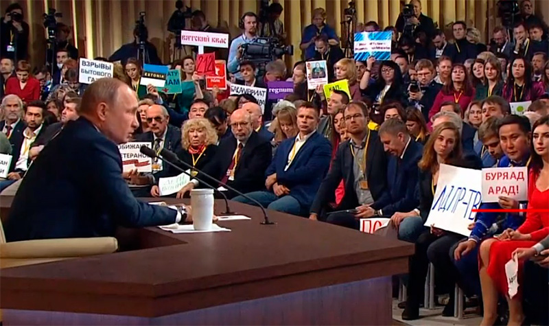 Владимир обнаружил интересный плакат во время пресс-конференции Путина. Буря - ад, а в ней намек, добрым молодцам урок. Интересно, что Путин на это ответил?