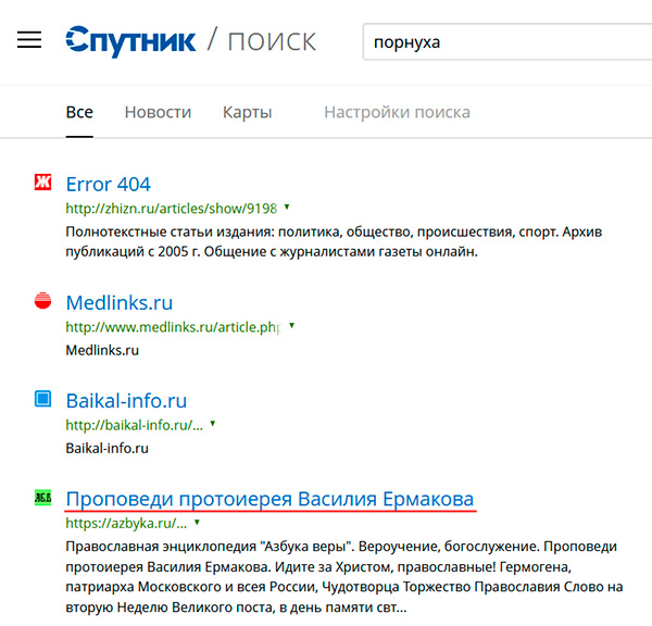 А уж по запросу "порнуха" столько всего в Спутнике вылезает - и глава Чувашской республики, Фольксваген Внуково (правда, 404), и НТВ, и Иркутские новости...