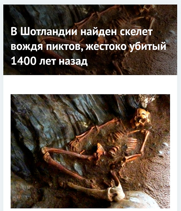 Сергей считает, что тут ошибки никакой нет. Потому что нашли скелет, жестоко убитый 1400 лет назад. А вот вождь пиктов, вероятно, выжил.