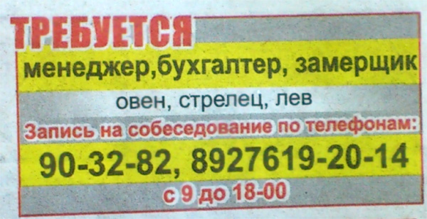 Юлия прислала потрясающее по своей пронзительности объявление.