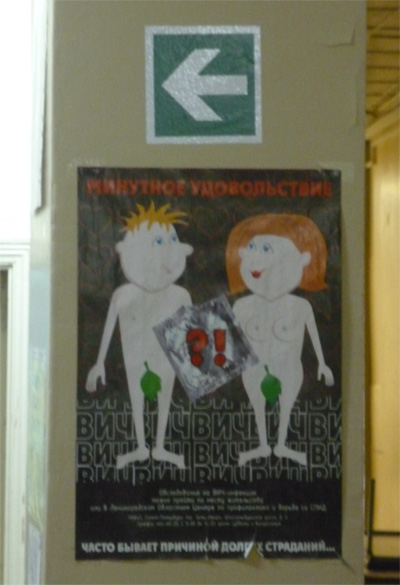 Лана прислала плакат, висящий в поликлинике. Интересно то, что над плакатом четко указано направление получения минутного удовольствия.