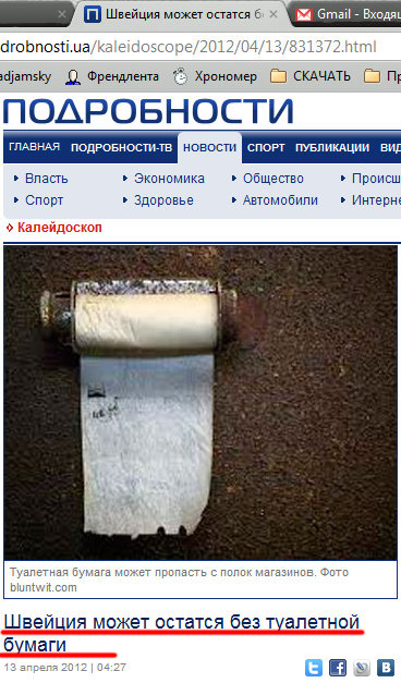 Новостист явно куда-то сильно торопился, считает Виктор. Вероятно, испытать туалетную бумагу, которой он, в отличие от Швеции, не лишился.