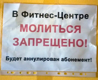 Про моление в фитнес-центре - это ассимметричный ответ фитнес центров на дело Пусуй. Им двушечку за фитнес в церкви, а вам лишение абонемента за моление в фитнес-клубе.