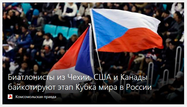 А с биатлонистами из Чехии то что непонятно? Сказано же, приедут в Россию и будут байкотировать. Т.е. скажут котикам "Бай". Страшные люди! Просто звери! Человек с ружьем, сказавший котикам "Бай" - просто изверги!