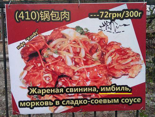 А вот и нет! Было бы аутентичное, они бы написали: "Заленая свинина, имбиль, молковь в сладко-соевым суси".