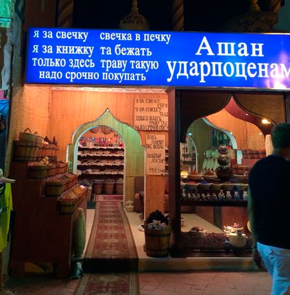 А на плакате в египетском магазине кто-то зло пошутил над хозяином. Небось попросил написать рекламный стишок по-русски, шутник и написал 😄