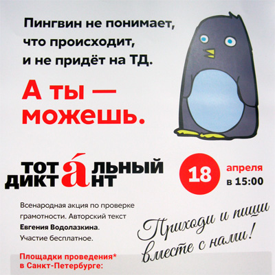 Честно говоря, так и не понял, что не так с Тотальным диктантом. А всё остальное хорошо. Особенно порвал почему-то ашан ударпоценам.