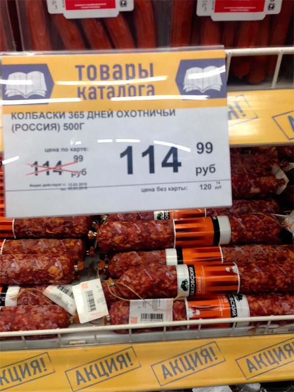 Классные скидки, считает Александр, очень гуманные. А почему, вы думаете, скидки? Потому что колбаски только 365 дней охотничьи. А на 366-й день сами начинают охотиться на владельца. Или превращаются в тыкву.