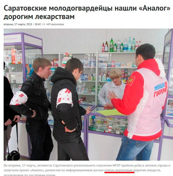Саратовские молодогвардейцы, радуется Дмитрий, нашли "Аналог" дорогим лекарствам.