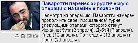 "Нет, ни за что, ЭТО мы лечить не будем!" - сурово сказал Паваротти докторам, после чего решительно перенес хирургическую операцию на шейные позвонки. Те недовольно хрустнули, но повиновались.