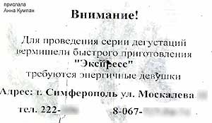 Вот тут надо подумать. Зачем для проведения серии дегустации вермишели требуются энергичные девушки? А-а-а-а, там же вермишель быстрого приготовления! Если девушки будут не сильно энергичные, они не успеют ее пробовать после быстрого приготовления. Вопрос в другом. Насколько долго девушки сохранят свою энергичность после такой спринтерской серии дегустаций? Не придется ли их срочно отправлять на серию дегустации гербалайфа?