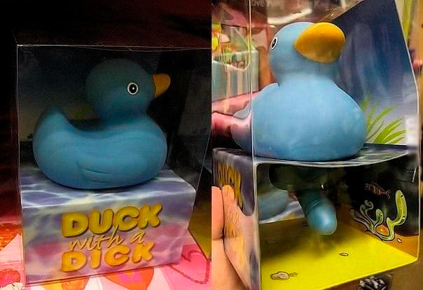 Про утёнка на упаковке всё честно написано. Duck with dick - дословно "утёнок с хером". 😄