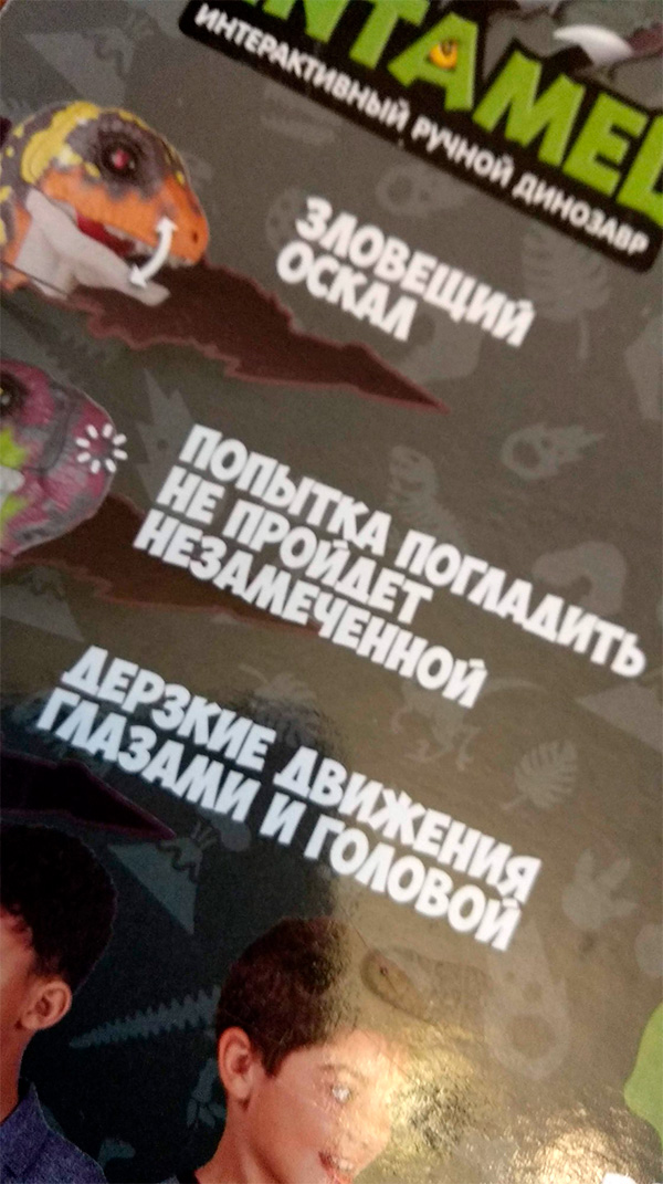 Еще можно ручного динозавра подарить, предлагает Ирина. Реклама на коробке прям увлекательная-увлекательная!