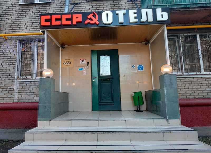 Евгений прислал фотографию, вызывающую сильнейший когнитивный диссонанс. Потому что если это "СССР", то должно быть написано не "Отель", а "Гостиница". На стене гостиницы должна красоваться огромная табличка, где золотом по мрамору выведено "Мест нет". Рядом со входом должна лежать грязная половая тряпка, недалеко от которой на стуле сидит вахтерша баба Шура и на всех входящих орет: "Ноги вытирайте, оглашенные, я не нанималась за вами подтирать!" Вот тогда будет вполне аутентично.