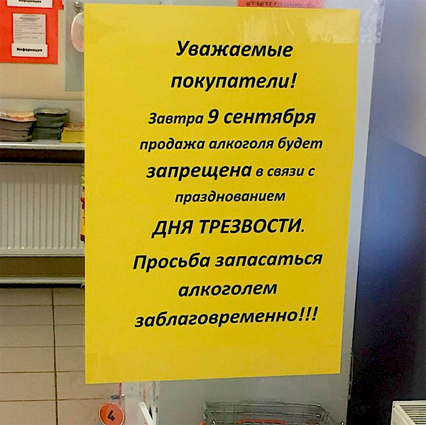 Кстати, махитой-то и прочим бухлом надо запасаться заблаговременно, считает Гена. Иначе нечем будет отметить День трезвости.