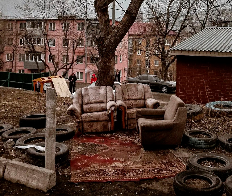 Кресла на улице - до первого дождя. Потом уже не просохнут.