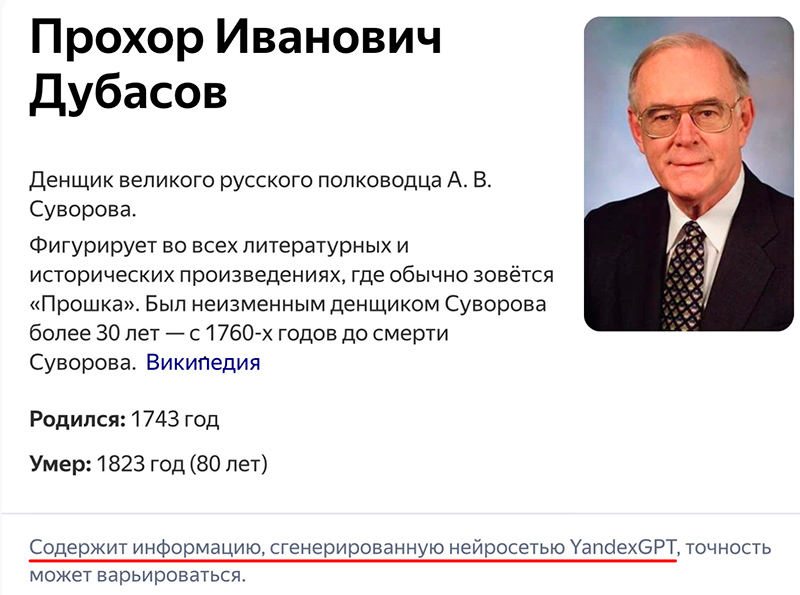 Андрей в восторге от того, как YandexGPT сгенерировал легендарного Прошку.