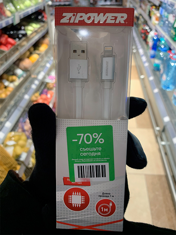 В "Азбуке вкуса", рассказала Юлия, советуют съесть сегодня вот этот проводок - и тогда они дадут скидку. Видимо, съесть надо прямо перед кассиром.