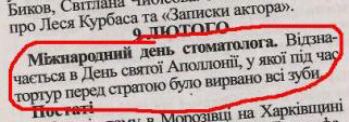 Оказывается, рассказал Тэофило, Международный день стоматолога отмечается в день святой Апполонии, у которой во время пыток вырвали все зубы. Симптоматично...