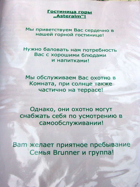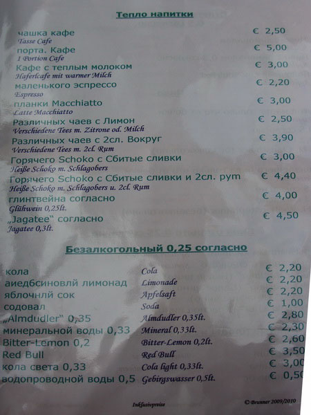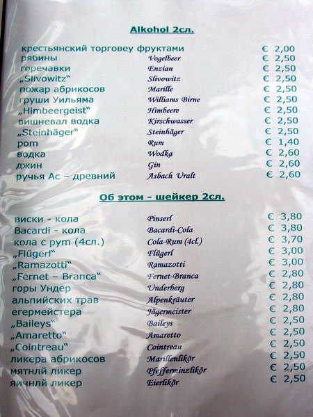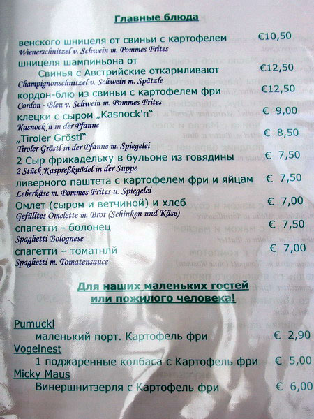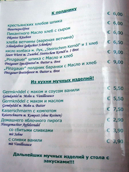 Виктор прислал чудеснейшее меню горных отморозков (Австрия). На русском.