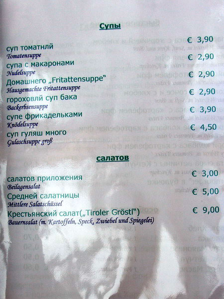 P.S. Алекс, в вашем комментарии к меню из Австрии небольшая опечатка.