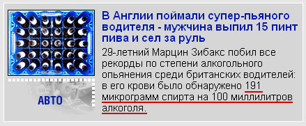 А еще говорят, что русские много пьют, сокрушается Алексей. Вы посмотрите на этого туманного альбионца! В его спирте крови не обнаружено!
