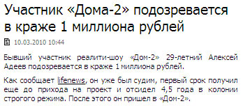 А что, хорошая карьера, считает Александр. После четырех с половиной лет в колонии строгого режима прямая дорога в "Дом-2".