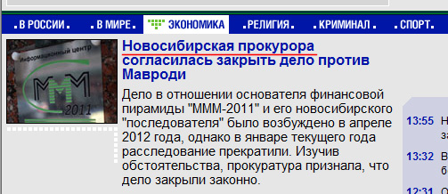 Tana прислала любопытную заметку. Сам текст заметки - вполне нормальный: раз сотни тысяч россиян уже лет двадцать скачками несут деньги этому жулику и просят, чтобы их кинули, значит, никакого состава преступления там нет. А вот портрет новосибирской прокуроры в иллюстрации - он вообще впечатляет.