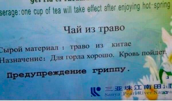 А вот кому траво из Китая, предлагает Марина. Для горла хорошо - кровь пойдет! И гриппу будет предупреждение.