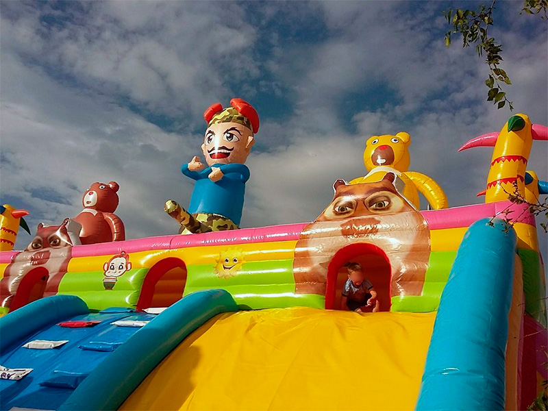 Ну, это еще что, считает Евгений. Вон, в парке "Юбилейный" в Улан-Удэ установили вот такой детский батут. У солдата, который в центре, явно выходной, пуговички в ряд. И ствол у него в полной боевой готовности - правильный пример подает детишкам.