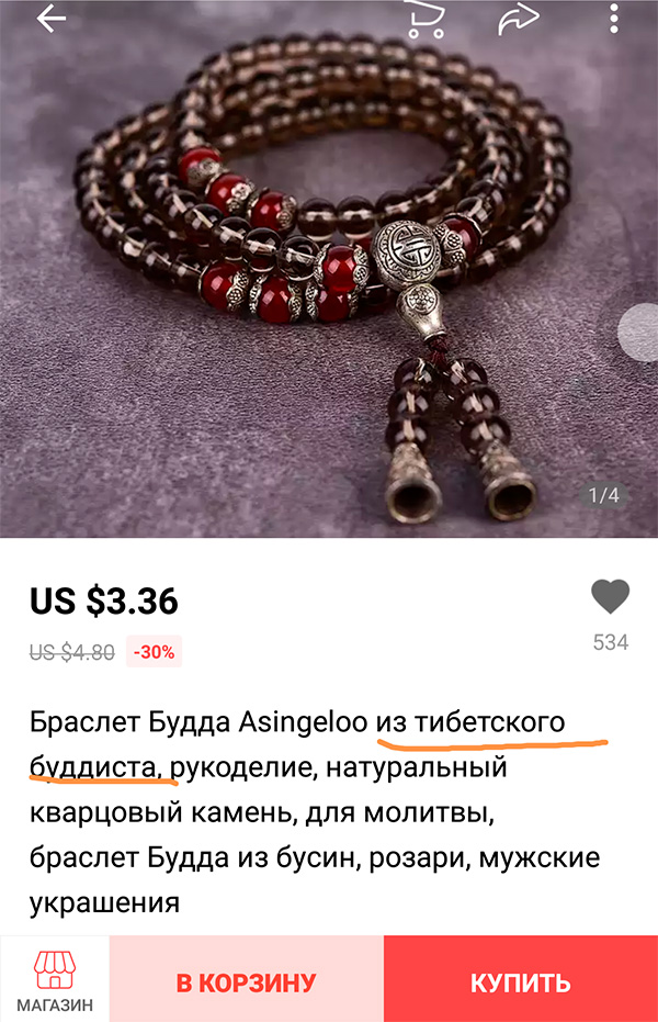 VVVV настоятельно рекомендует купить браслет "Будда" из настоящего тибетского буддиста! Тот столько медитировал, что совершенно окаменел, и теперь из него делают сувениры.