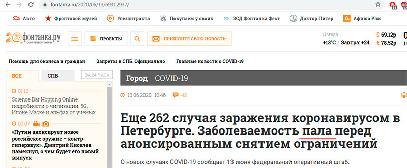 В Питере, радуется Elena, коронавирус как услышал о снятии ограничений перед голосованием за Обнуленного, так и пал смертью храбрых.