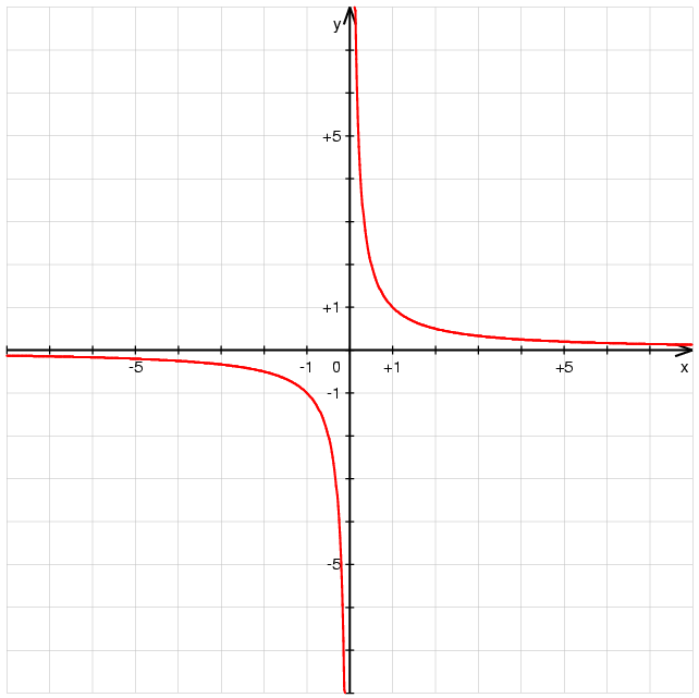 1/x - убывает на всей области определения, и ее график - гипербола.