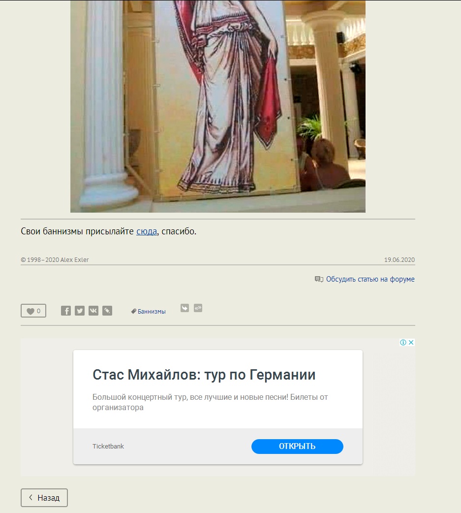 Судя по всему, Google-Ads тоже постит баннизмы Экслеру - вот какой последний гэг вывалился в конце ленты, аккурат за греко-японской гетеро-гейшей.