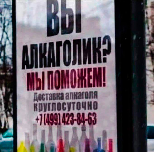 Вы невнимательны. Там доставка алкАголя.