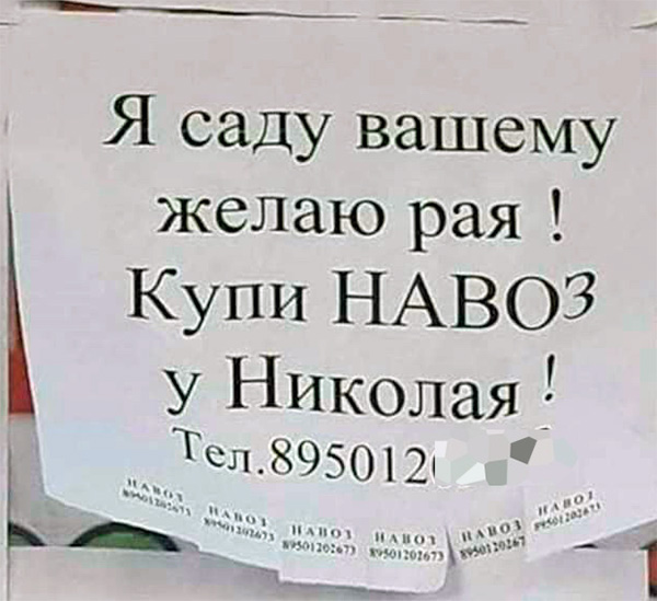 Причем заметьте, что тот же номер телефона на отрывных секциях внизу объявления Николая почему-то не затерли.