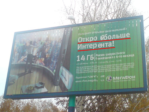 Монтажники всего-то отметили новый день раньше времени, зато теперь у "Мегафона" можно откро йбольше Интерента! А что, прям внимание привлекает! Прям так и хочется Интерента открыть!