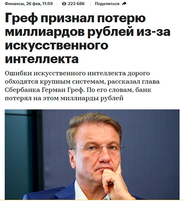 Человек, который утверждал, что: "Математические школы являются пережитком прошлого, а такие профессии как математик и программист в будущем будут нужны все меньше и меньше" сегодня сокрушается, что: "потерял миллиарды рублей из-за ошибок искусственного интеллекта".